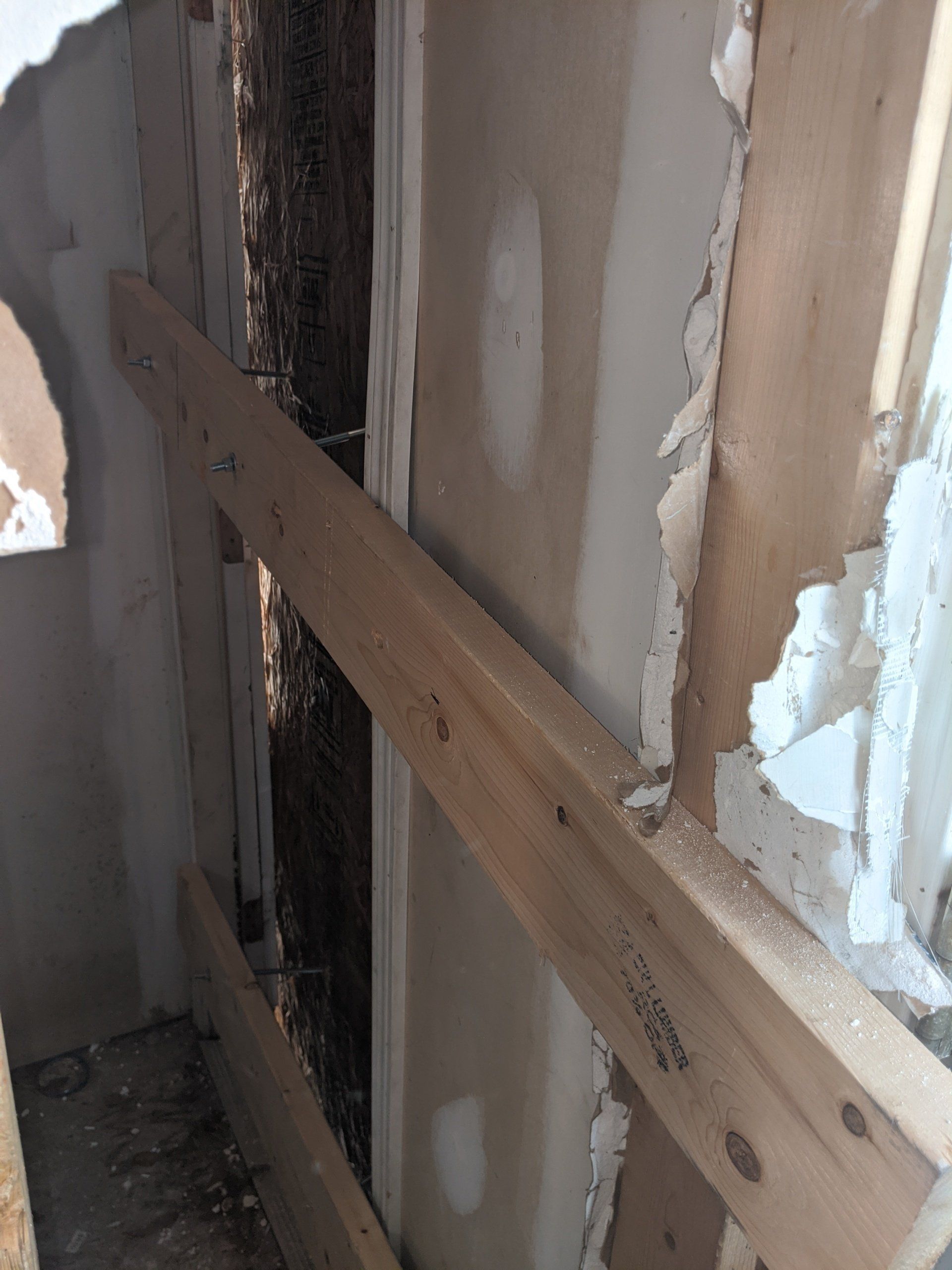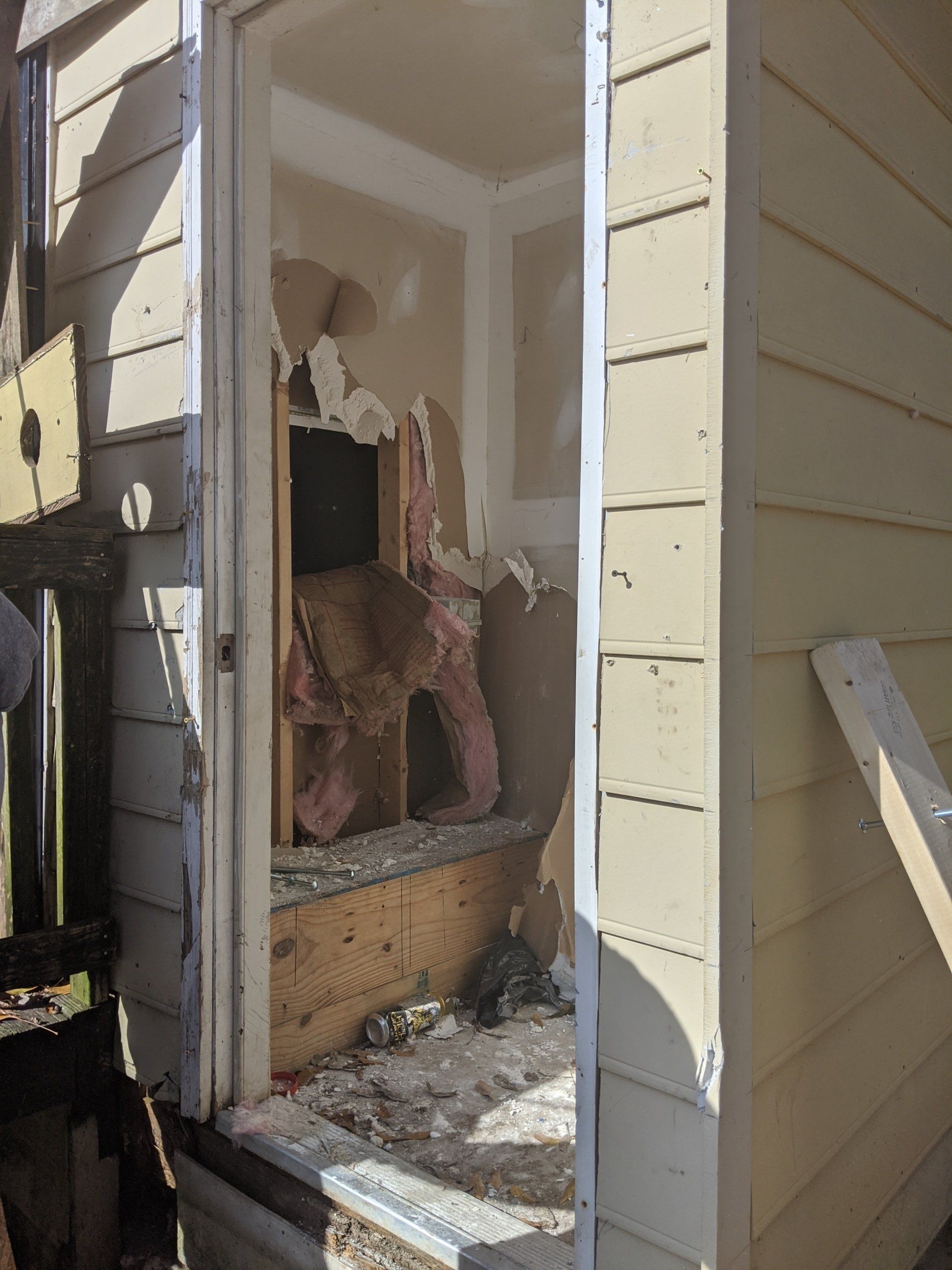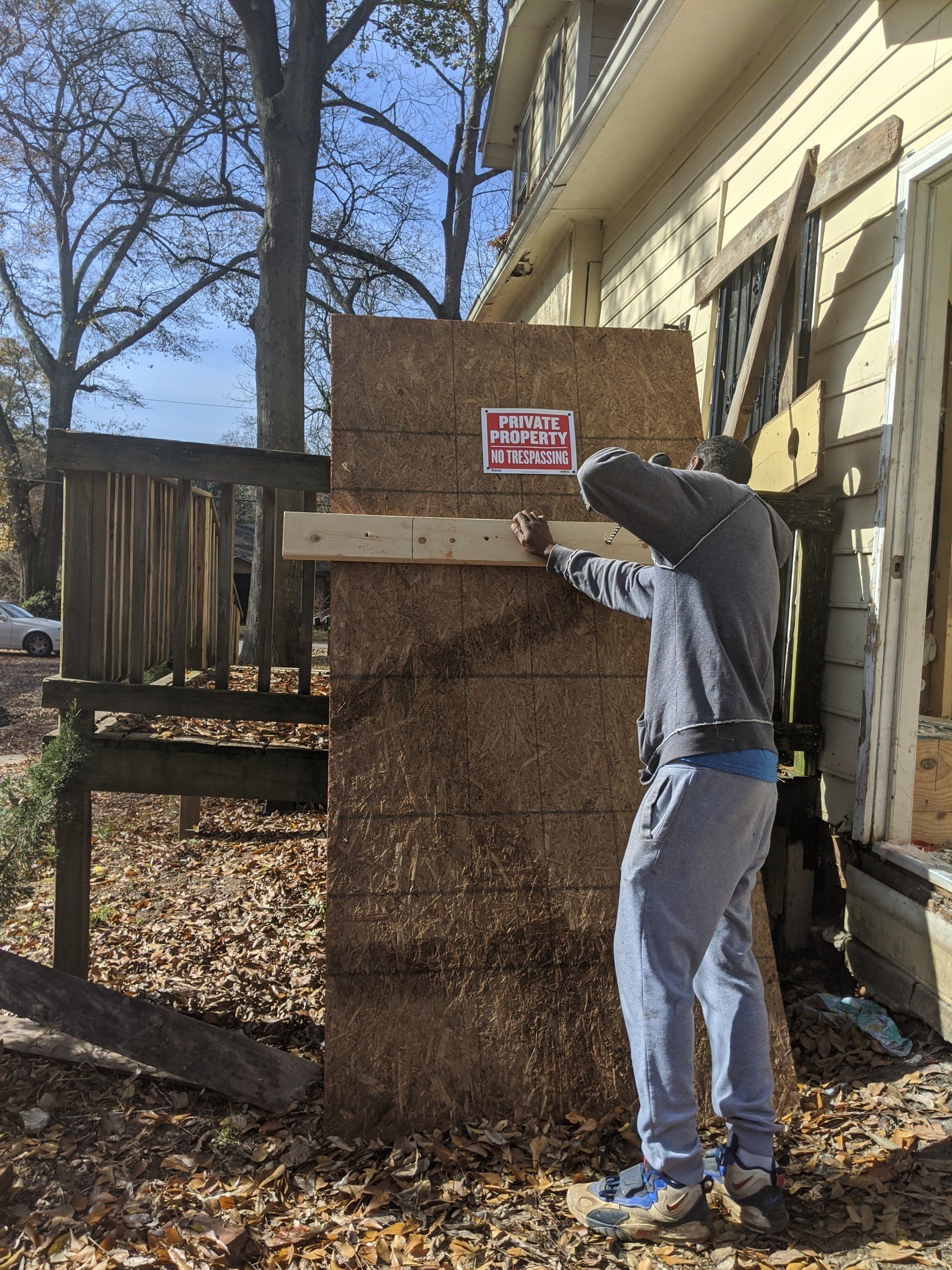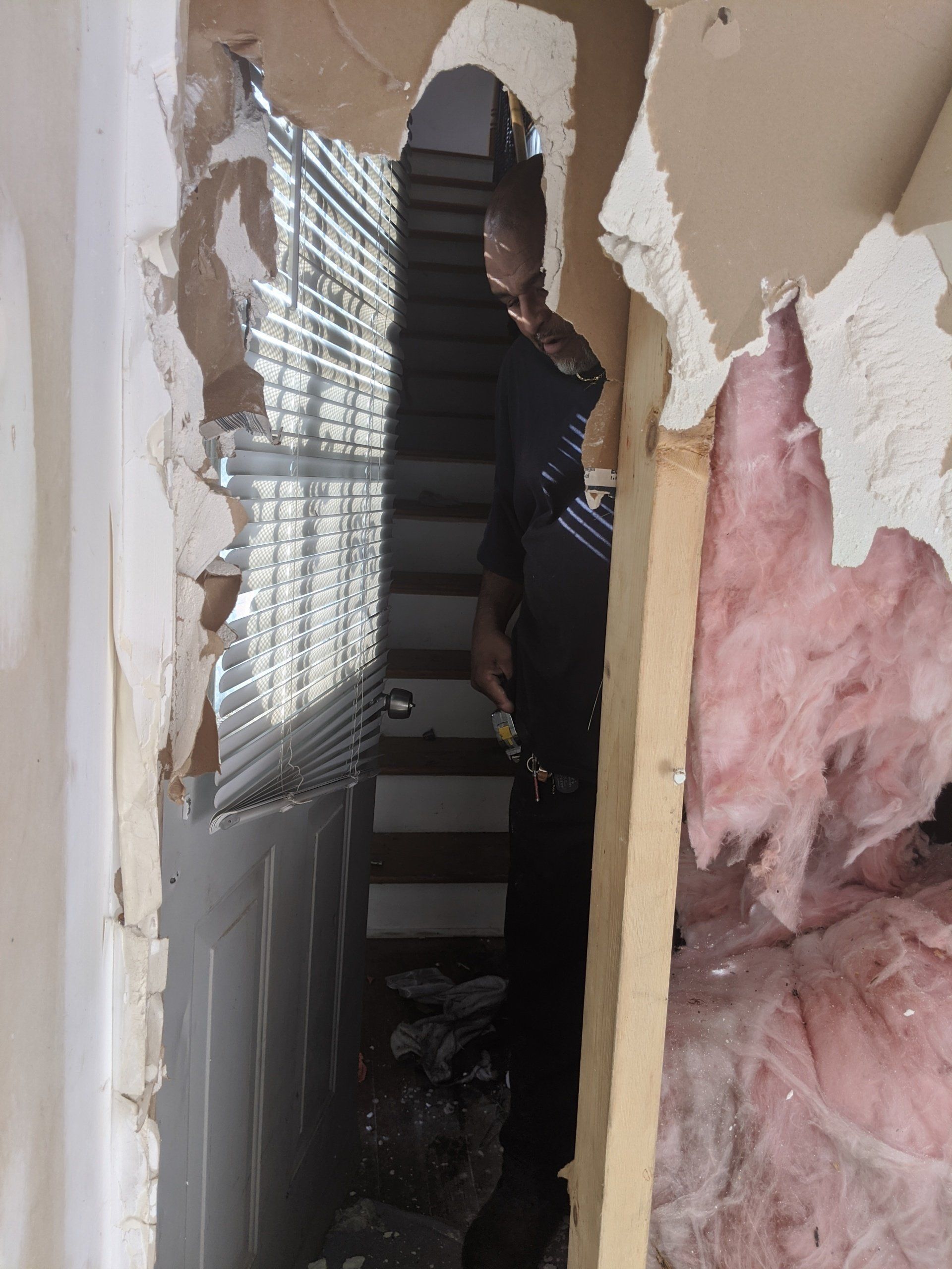 Seen in the below pictures, we are repairing the inside of the house where vandalism/robberies have taken place. Our goal was to ensure that we reinforced the boards around the property to ensure that there is not additional damage done.